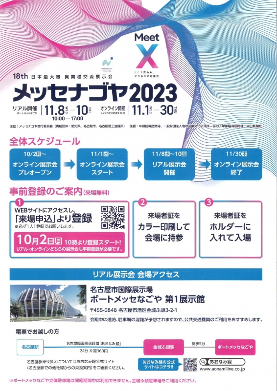 ポートメッセなごや 第1展示館にて開催されます「メッセナゴヤ2023」に出展します。